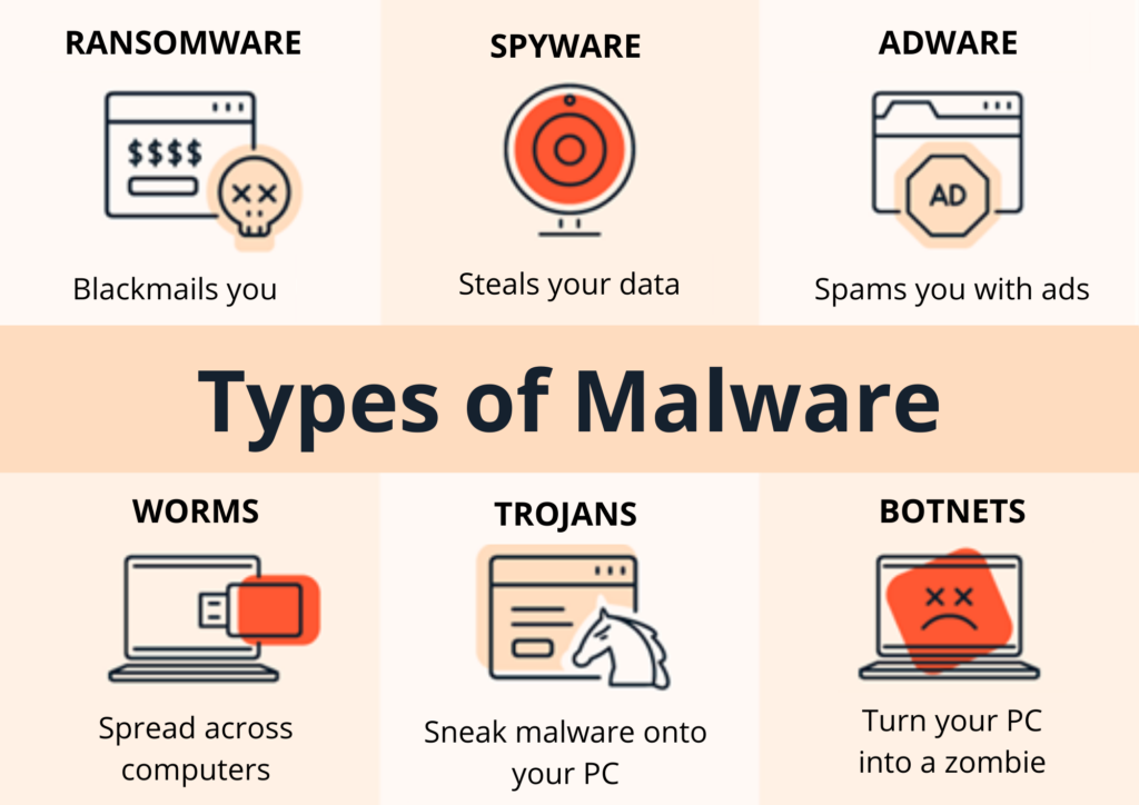Malware: It is among the most harmful and fast types of malicious attacks that help gain unauthorized access to a system or system network. Malware often self-replicates; that is, when one system is corrupted, malware easily corrupts all computer systems connected to the network over the internet. In case of malware, even an external device connected to the system can be corrupted. Keeping software updated, being cautious with emails, and regularly backing up your data are among the precautions you can take.