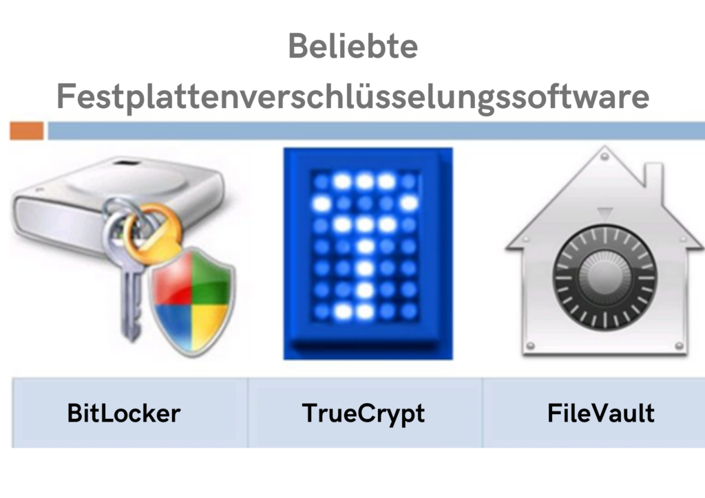 Festplattenverschlüsselung: Bei der Festplattenverschlüsselung (Full Disk Encryption, FDE) wird die gesamte Festplatte oder eine bestimmte Partition durch Verschlüsselung der Daten gesichert. Bei diesem Ansatz werden alle Daten verschlüsselt, wenn der Computer ausgeschaltet ist, und für den Zugriff ist in der Regel ein Kennwort oder ein Hardware Schlüssel erforderlich. Beliebte Festplattenverschlüsselungs Programme sind BitLocker (für Windows) und FileVault (für macOS).