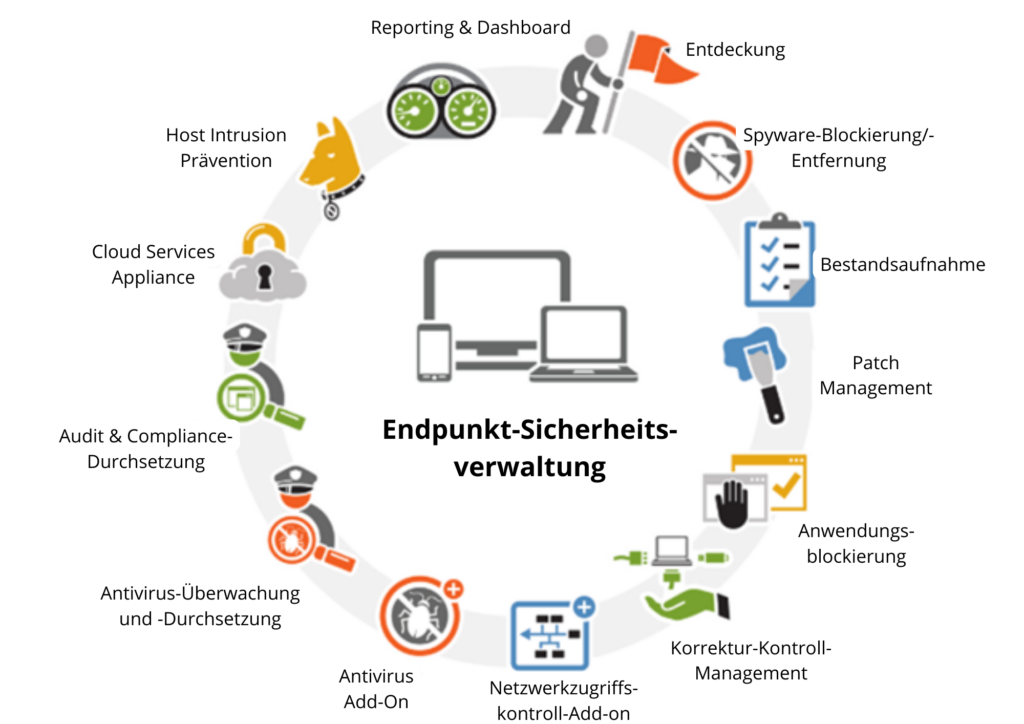 Endpunkt Protection Management Systems (EPMS) sind Sicherheitslösungen, mit denen Unternehmen und Organisationen alle Endpunkte (Computer, mobile Geräte, Server usw.) in ihrem Netzwerk von einem zentralen Standort aus verwalten und schützen können. Diese Systeme erfüllen eine Reihe von Funktionen, darunter Schutz vor Cyber-Bedrohungen, Reaktion auf Zwischenfälle und Berichterstattung. Die Bedeutung von EPMS wird noch deutlicher, wenn man die zunehmenden Cyber-Bedrohungen und komplexen IT-Umgebungen bedenkt. Diese Systeme ermöglichen eine schnelle Erkennung, Reaktion und Meldung von Bedrohungen, stärken die Sicherheitslage eines Unternehmens und tragen dazu bei, den Schaden zu minimieren, der durch Cyberangriffe entstehen könnte. Zu den wichtigsten Funktionen und der Bedeutung von EPMS-Software gehören: Vorbeugung und Erkennung von Bedrohungen, Verwaltungskonsolen und zentralisierte Verwaltung, Reaktion auf Vorfälle und Berichterstattung, Updates und Patch-Management, Anwendungskontrolle und Whitelisting, Konfigurationsmanagement, Zugriffskontrolle, Verwaltung mobiler Geräte