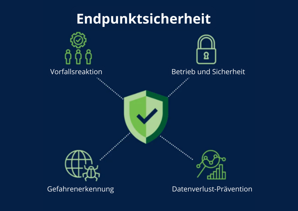 Die Endgerätesicherheit ist eine wichtige Komponente der allgemeinen Cybersicherheitsstrategie eines Unternehmens. Mit der zunehmenden Anzahl von Geräten, die mit einem Netzwerk verbunden sind, steigt auch das Potenzial für Cyber-Bedrohungen. Die Endgerätesicherheit zielt darauf ab, diese Geräte, oder “Endpunkte”, vor potenziellen Bedrohungen zu schützen. Dazu gehören Laptops, Desktops, Mobiltelefone, Tablets, Server und sogar IoT-Geräte. Die Endpunktsicherheit umfasst den Schutz dieser Geräte vor potenziellen Bedrohungen und Angriffen. Dabei kann es sich um alles Mögliche handeln, von bösartiger Software (Malware) bis hin zu gezielten Angriffen von Cyberkriminellen. Zusammenfassend lässt sich sagen, dass die Endpunktsicherheit ein wichtiger Aspekt der Cybersicherheit ist. Es geht darum, die Geräte, die eine Verbindung zu einem Netzwerk herstellen, vor einer Vielzahl von Bedrohungen zu schützen. Dies erfordert eine Kombination aus Technologien, Richtlinien und Praktiken. Da die Anzahl der Geräte, die mit Netzwerken verbunden sind, weiter zunimmt, steigt auch die Bedeutung der Endgerätesicherheit. Unternehmen müssen proaktive Schritte zum Schutz ihrer Endgeräte unternehmen und sicherstellen, dass sie die neuesten und effektivsten Sicherheitsmaßnahmen für Endgeräte verwenden.