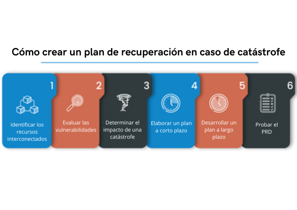 El desarrollo y la implantación de un plan de recuperación tras catástrofes es un proceso crucial en la gestión de la continuidad de negocio, cuyo objetivo es restablecer las TI y las funciones operativas críticas tras una catástrofe. Esto implica varios pasos clave: