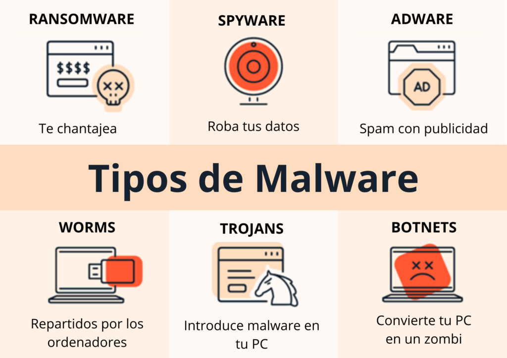 Botnet: Malware que ataca a varios ordenadores conectados entre sí a través de una red privada. Los piratas informáticos acceden a todos los sistemas de esa red y los controlan sin el conocimiento del propietario. Todos los ordenadores de esta red se denominan zombis, que desorganizan un gran número de dispositivos siguiendo las instrucciones del hacker.