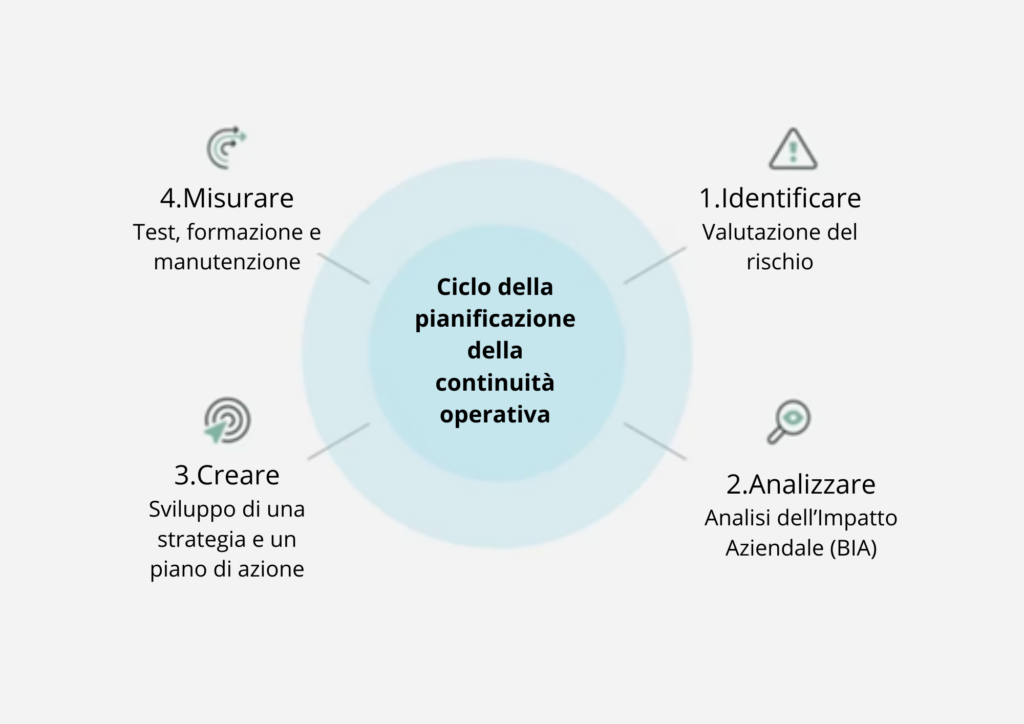 La valutazione dei rischi e l’analisi degli impatti sono componenti della pianificazione della continuità operativa (BCP). Questi processi aiutano le organizzazioni a identificare le potenziali minacce e a comprendere i possibili impatti sulle operazioni aziendali. Ecco come si svolgono di solito:
