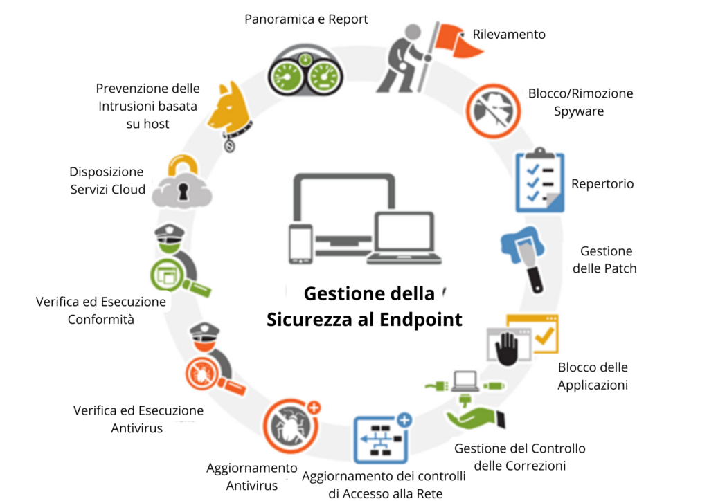 I sistemi di gestione della protezione degli endpoint (EPMS-Endpoint Protection Management System) sono soluzioni di sicurezza che consentono alle aziende e alle organizzazioni di gestire e proteggere tutti gli endpoint (computer, dispositivi mobili, server e così via) della rete con una strategia centralizzata. Questi sistemi svolgono una serie di funzioni, tra cui la protezione dalle minacce informatiche, la risposta agli incidenti e la creazione di rapporti. L’importanza degli EPMS diventa più evidente se si considerano le crescenti minacce informatiche e gli ambienti IT complessi. Questi sistemi consentono di rilevare, rispondere e segnalare rapidamente le minacce, rafforzando la posizione di sicurezza di un’organizzazione e aiutando a minimizzare i danni che potrebbero derivare da attacchi informatici. Le funzioni principali e l’importanza del software EPMS includono: