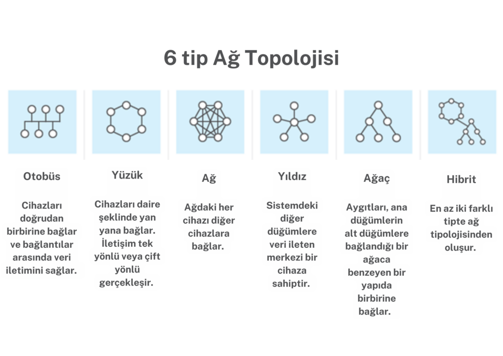 Çeşitli ağ topolojileri şunlardır: