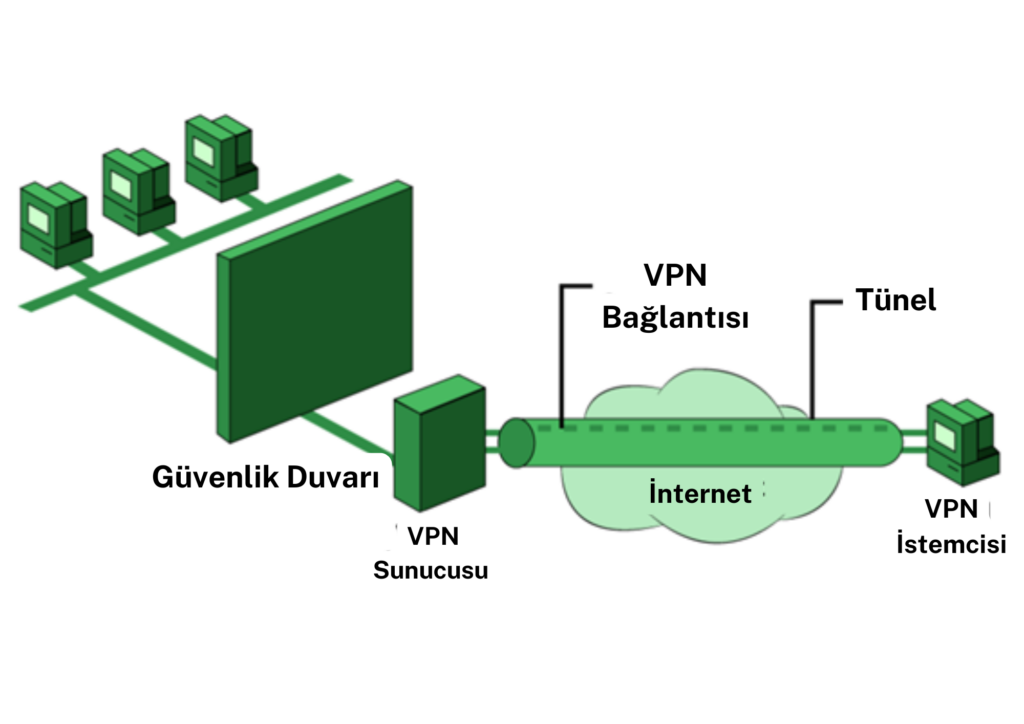 Güvenlik Duvarları ve VPN’ler (Sanal Özel Ağ): Güvenlik duvarı, bir bilgisayar ağı üzerindeki gelen ve giden trafiği kontrol eden bir güvenlik sistemidir. Güvenlik duvarı, ağı veya bilgisayarı koruyarak belirli trafik kurallarını ayarlar ve bazı trafiği engeller veya izin verir. Bu, yetkisiz kullanıcıların ağa erişimini engeller ve güvensiz uygulamaların ağı tehlikeye atmasını önler. VPN, internet üzerinden güvenli bir bağlantı kurmak için kullanılan bir teknolojidir. VPN, kullanıcının internet trafiğini şifreler ve genellikle bir VPN sunucusu aracılığıyla yönlendirir. Bu, kullanıcının gerçek IP adresini gizler ve internet trafiğini izlemeyi veya manipüle etmeyi zorlaştırır.
